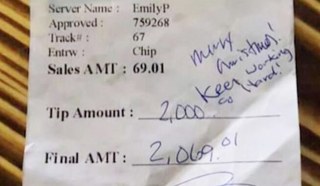 That’s why it was so heartwarming for server Emily Bauer when a generous patron gave her a $2,000 tip while working at a restaurant in Texas.